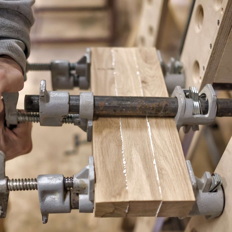 Presser : l'idéal est de presser les pièces à coller le plus fortement possible avec un serre joint adéquat. Pourtant, il faut bien respecter le délai de prise de la colle bois rapide dont le séchage peut plus ou moins varier en fonction de la température ambiante. Effectivement, il ne faut jamais pratiquer de collage par grand froid, par gel ou par faible température.