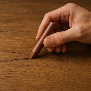 Utiliser un bâton cire, concourt à masquer les nœuds, les chocs, les éraflures, les fentes, les fissures ou les trous de vers par exemple. Il est généralement constitué de charges, de pigments naturels et de cires dures qui assurent une grande solidité après séchage.