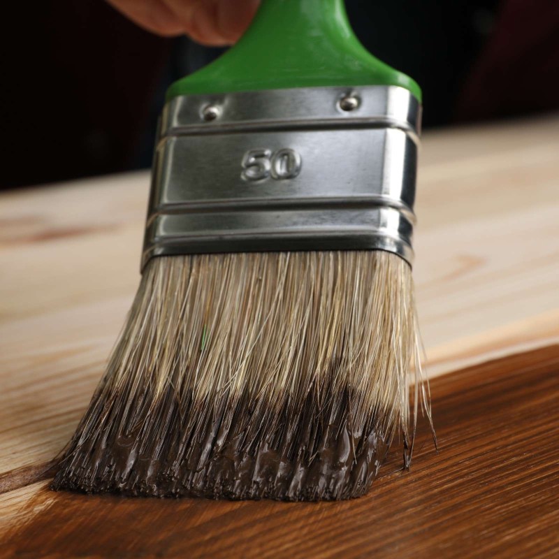 Appliquer avec une brosse plate, un chiffon doux ou une éponge dans le sens des fibres du bois.