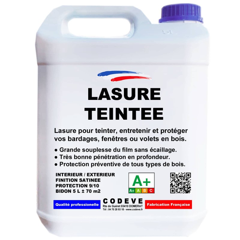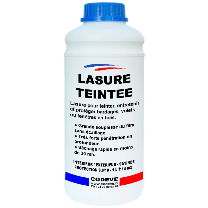 La lasure teintée pour bois est fabriquée avec des résines styrénées et des agents protecteurs de haute qualité. Elle contient des pigments flushés très performants afin de résister efficacement aux différentes sollicitations extérieures. Elle possède une remarquable tenue au soleil, à la lumière et aux rayons ultraviolets sans décoloration, sans jaunissement, ni blanchiment de la teinte.