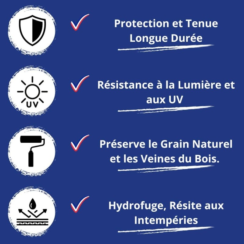 La couleur est chaude et naturelle, le veinage reste bien visible. L’application est simple, le séchage rapide et la protection efficace même en extérieur. Très bon produit.