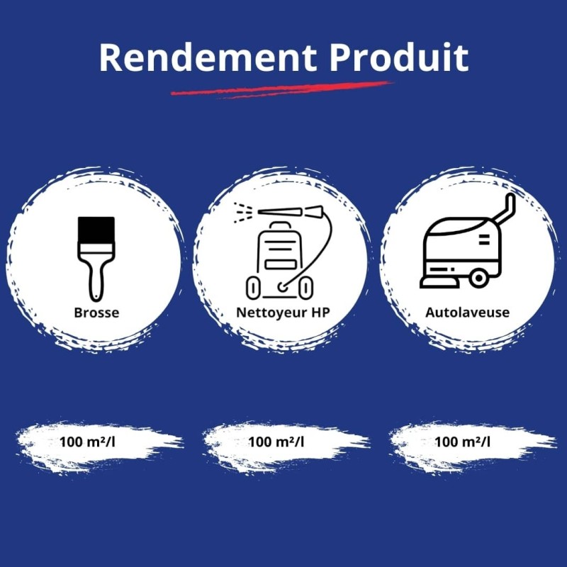 Autolaveuse : 1 l / 10 l d'eau pour 80 m2.