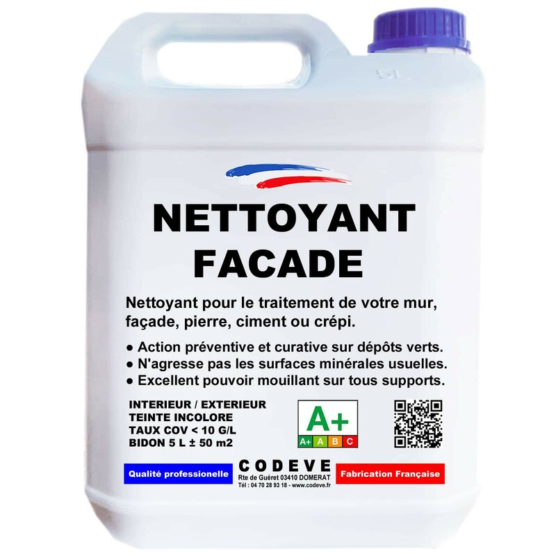 Produit professionnel, agit rapidement sur les salissures et traces vertes. Façade redevenue claire en une seule application.