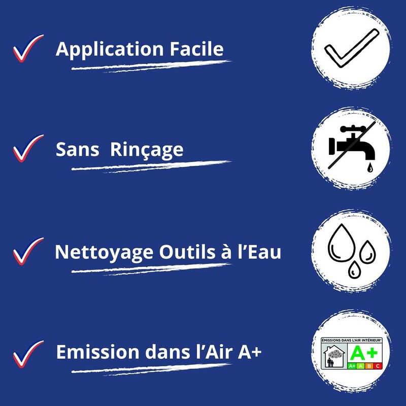 Agit vite sur les salissures, mousse légère, rinçage facile. L’enduit retrouve sa couleur d’origine.