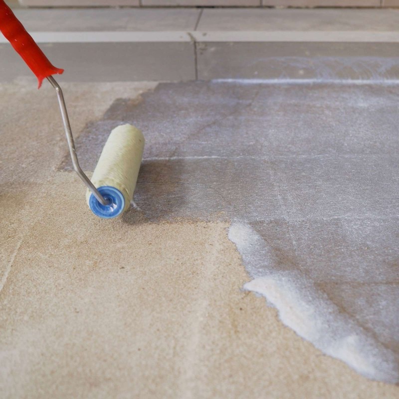 Appliquer un anti poussière sol, nécessite un petit travail de base à ne surtout pas oublier. En première étape, on doit toujours procéder à un contrôle de l'état du support pour être sûr de la bonne adhérence du produit. En deuxième étape, on doit effectuer un dégraissage correct avec un produit de dégraissage approprié à la surface. En troisième étape, on procède à une réparation consciencieuse du support en comblant les fissures, les trous ou les creux. En quatrième étape, on peut alors réaliser l'application de l'anti poussière avec un pinceau, un spalter ou un rouleau muni d'un manche télescopique.