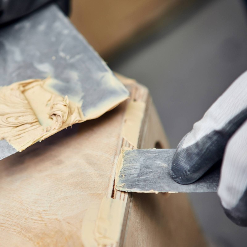 Malaxer soigneusement la pâte à bois avant toute utilisation pour obtenir une masse homogène.