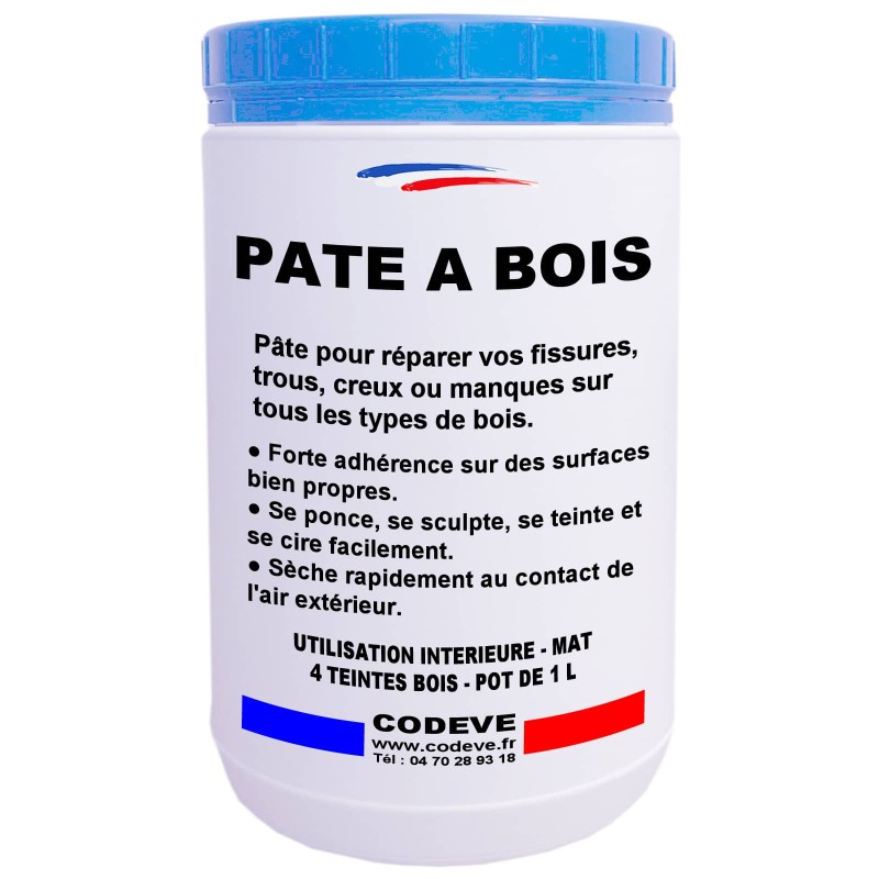 La pâte à bois est formulée à partir de résines cellulosiques et de poudres de bois finement micronisées. Ce produit permet ainsi de réparer les trous, les fissures ou les manques sur la plupart des bois et dérivés. De plus, cette pâte offre une excellente résistance aux chocs, aux coups et aux rayures. D'ailleurs, ce produit possède une résine très souple qui assure une tenue remarquable à la fissuration sans s'émietter. En effet, sa structure suit les déformations usuelles des supports sans se craqueler, sans se fendiller, ni se déformer.