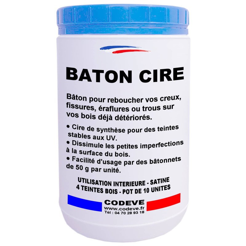 Ce bâton de cire est destiné à reboucher les légers chocs, les défauts, les éraflures, les nœuds, les fissures, les fentes ou les trous occasionnés par les petits accidents de la vie quotidienne. En plus, ces produits restent disponibles dans un grand choix de couleurs mis à disposition dans le nuancier bois. Grâce à cela, les bâtons de cire s'adaptent sans aucune difficulté aux teintes bois les plus fréquentes de la couleur la plus claire à la plus foncée.