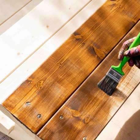 Appliquer avec une brosse, éponge ou chiffon jusqu'à saturation dans le sens des fibres du bois.