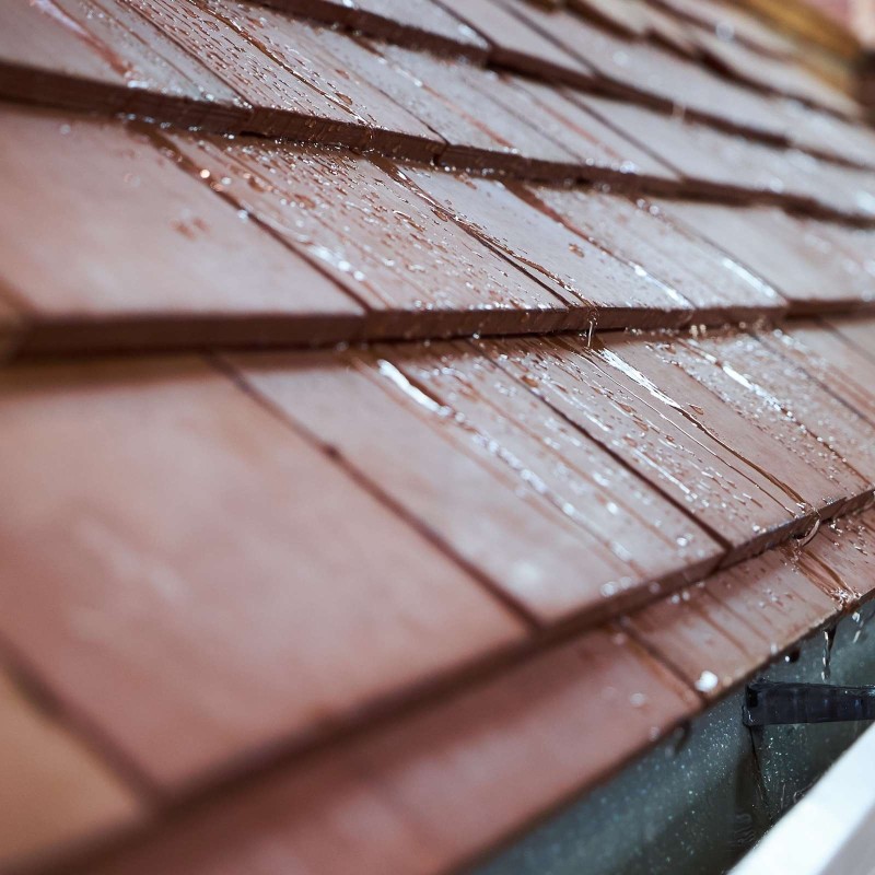 Après 24 h, la toiture était complètement hydrophobe. Résultat visible à chaque pluie.