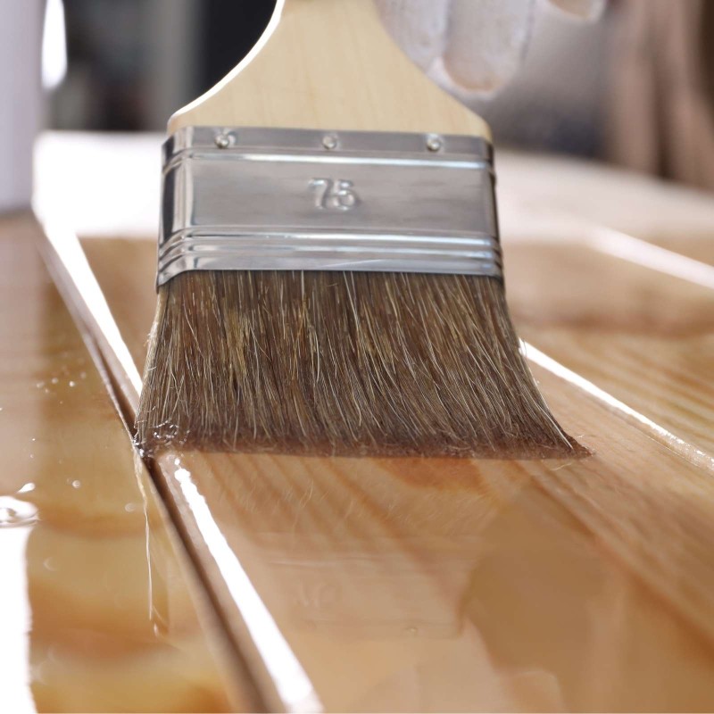 Appliquer en 2 ou 3 passes fines de vernis incolore en respectant bien le sens des fibres du bois.