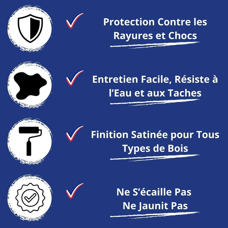 Super vernis, simple et facile a appliquer. Très beau résultat. Nous avons mis au préalable le primaire afin d'optimiser la protection du plan de travail de notre cuisine. Il à l'air de bien résister aux taches. A recommander!